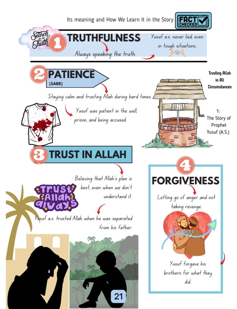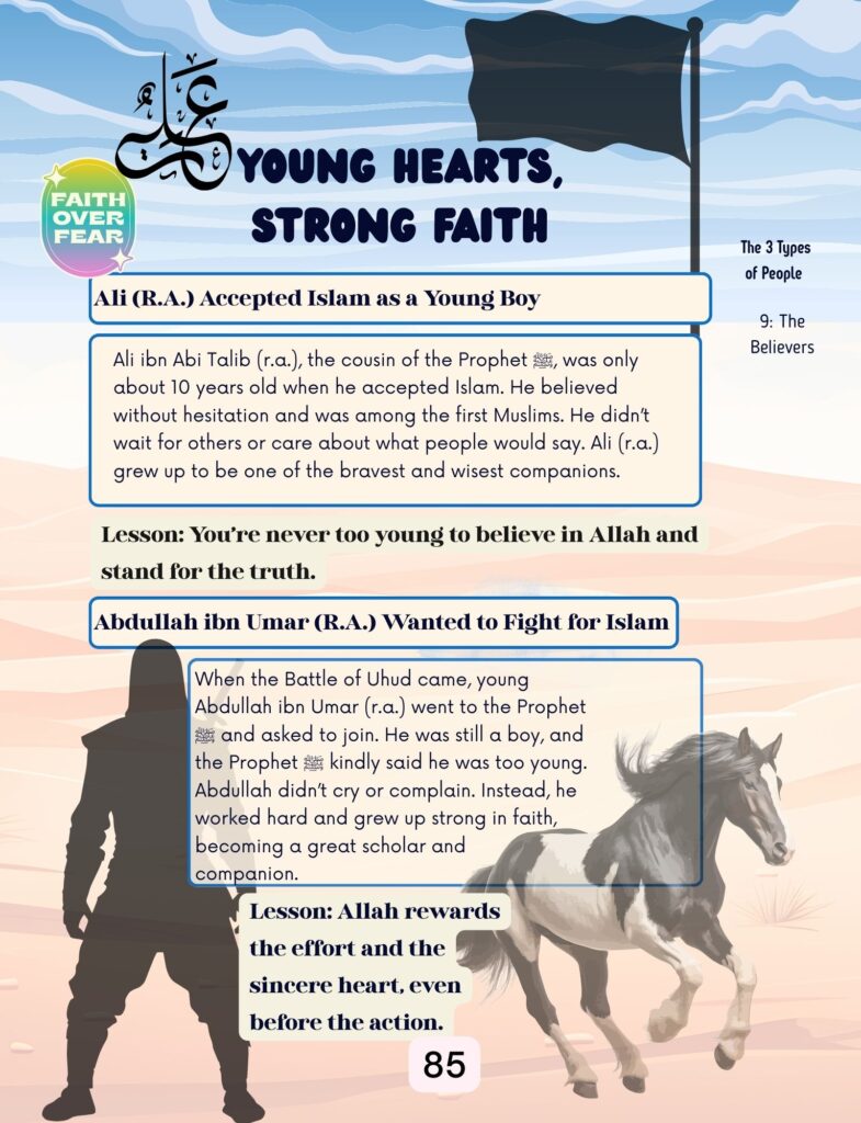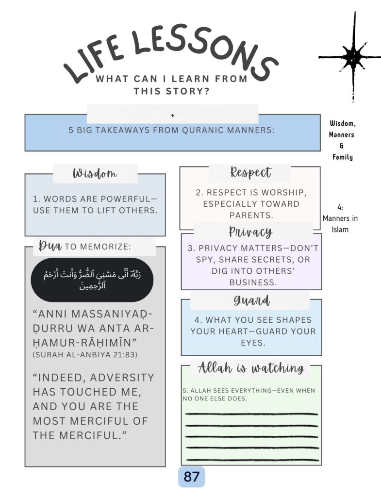 • Advanced reflection, comprehension questions, and lessons from Quranic stories.